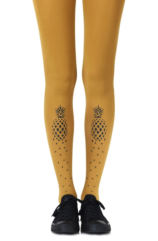 Zohara "If You Like Piña Coladas" Mustard Print Tights
