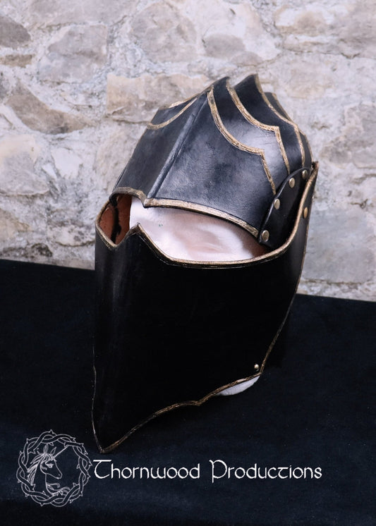 Genuine Leather Mask with Fangs and Intricate Gorget