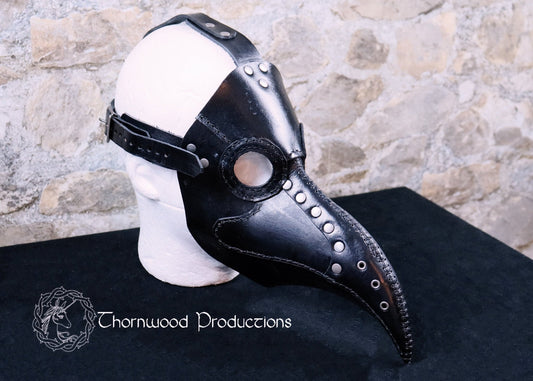 Leather Plague Doctor Mask with Elegant Stitching and Rivets