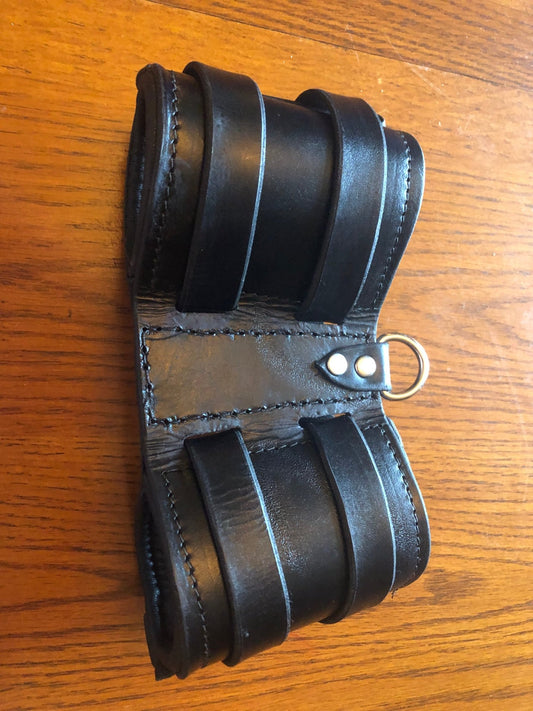 Leather Restraint Bracers with Leather and Buckle straps, D-Ring and Padding